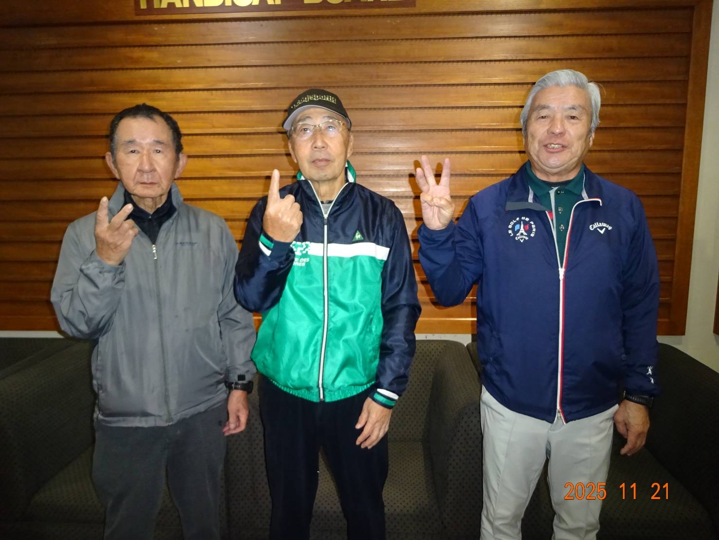 11月21日(金)、グレート仙台CCにて14名が参加。生憎の曇り空で気温が低く、時々小雨が降る中、元気一杯・楽しくプレイしました。