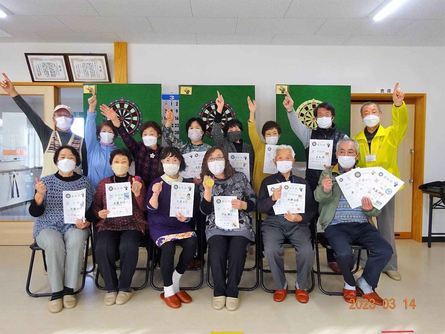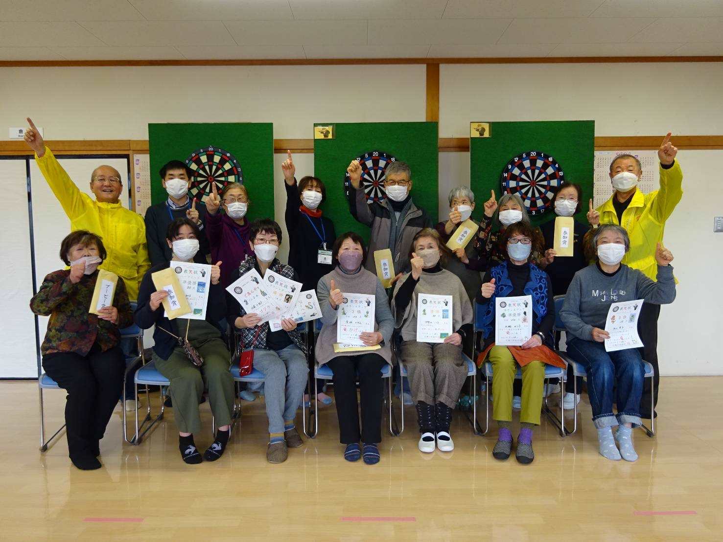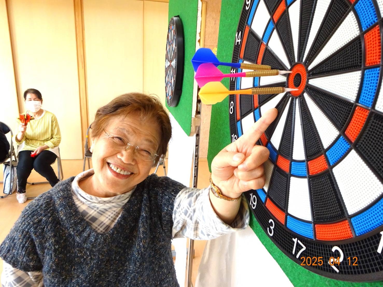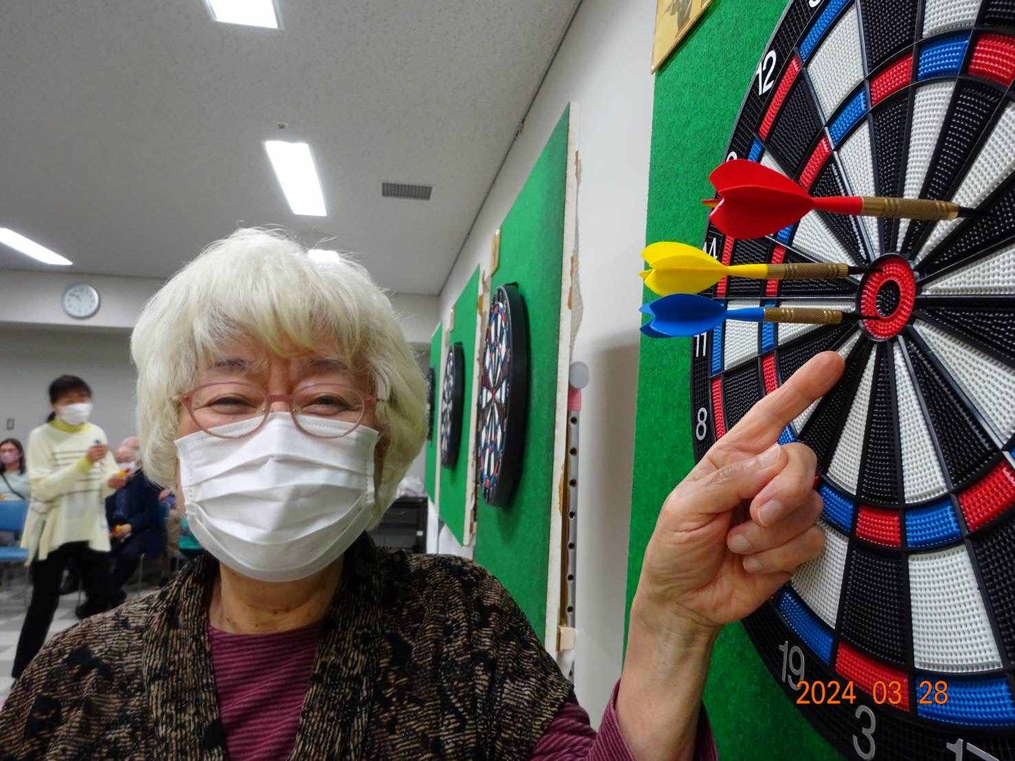 住民の皆さんは「ダーツ交流会」を一番の楽しみにされていらっしゃる方ばかりで、冬ノサムサニモマケズ楽しく元気にプレイして頂きました。