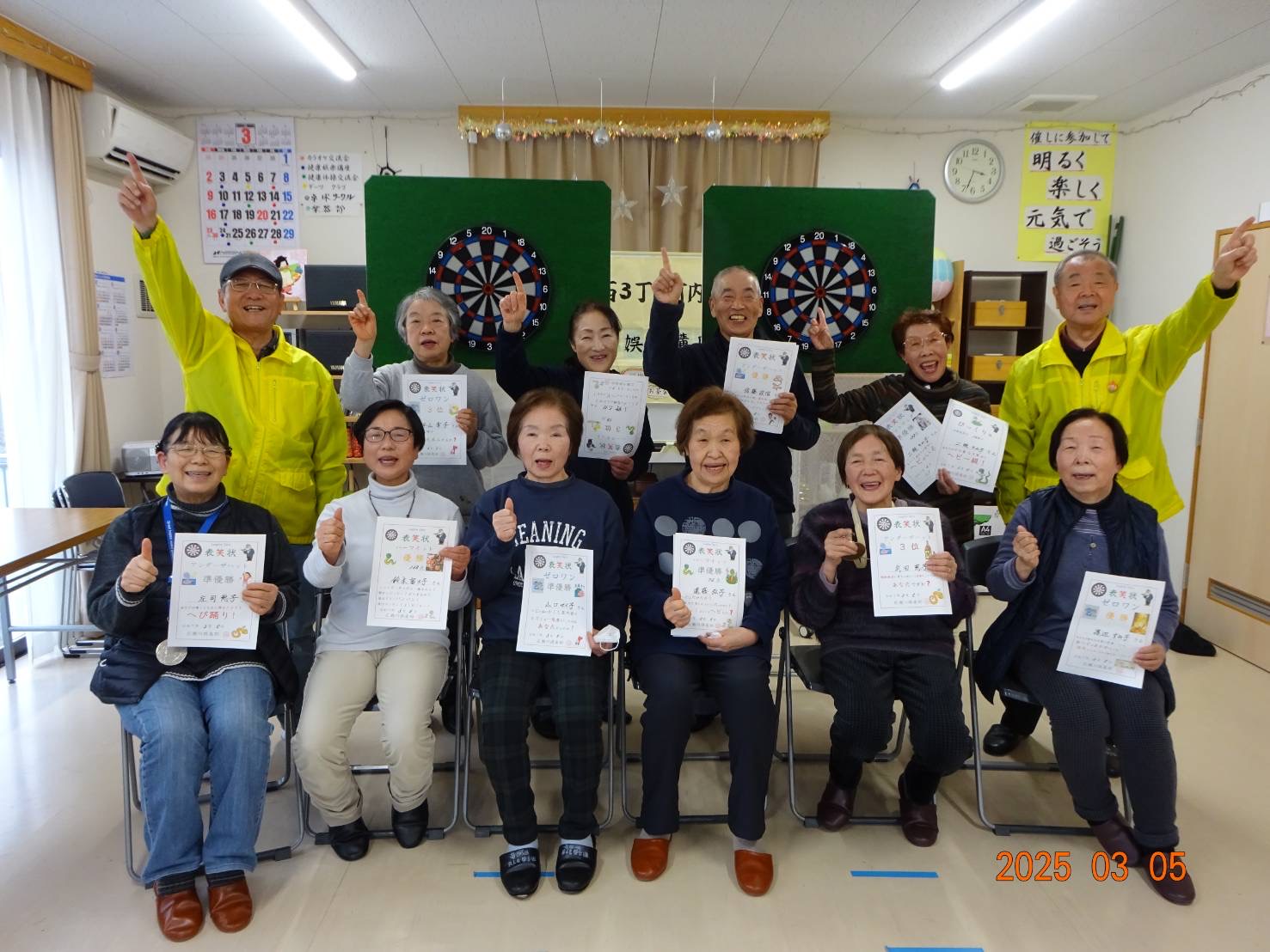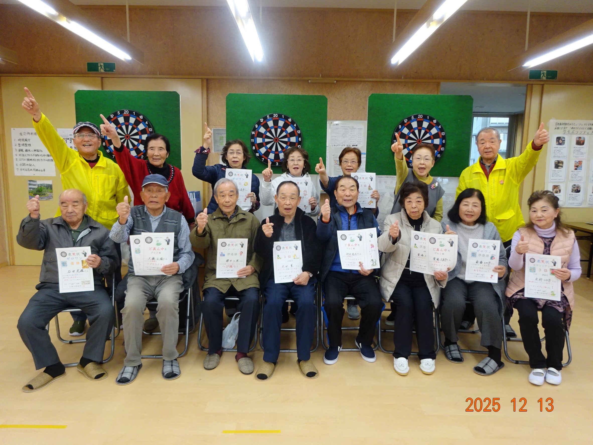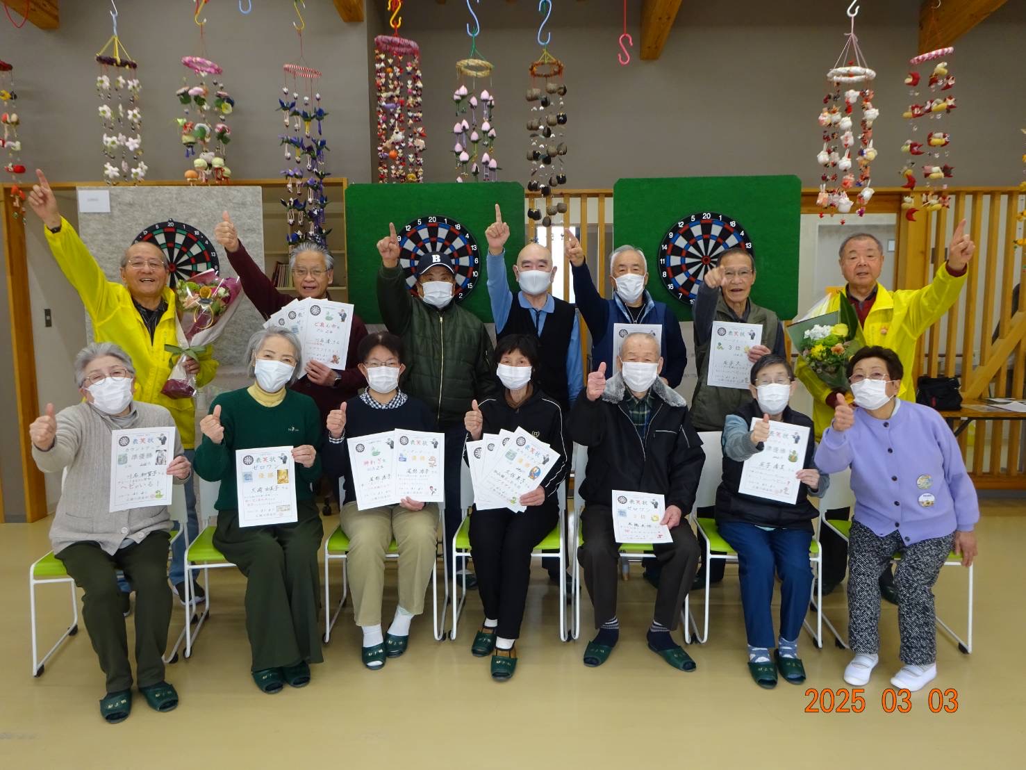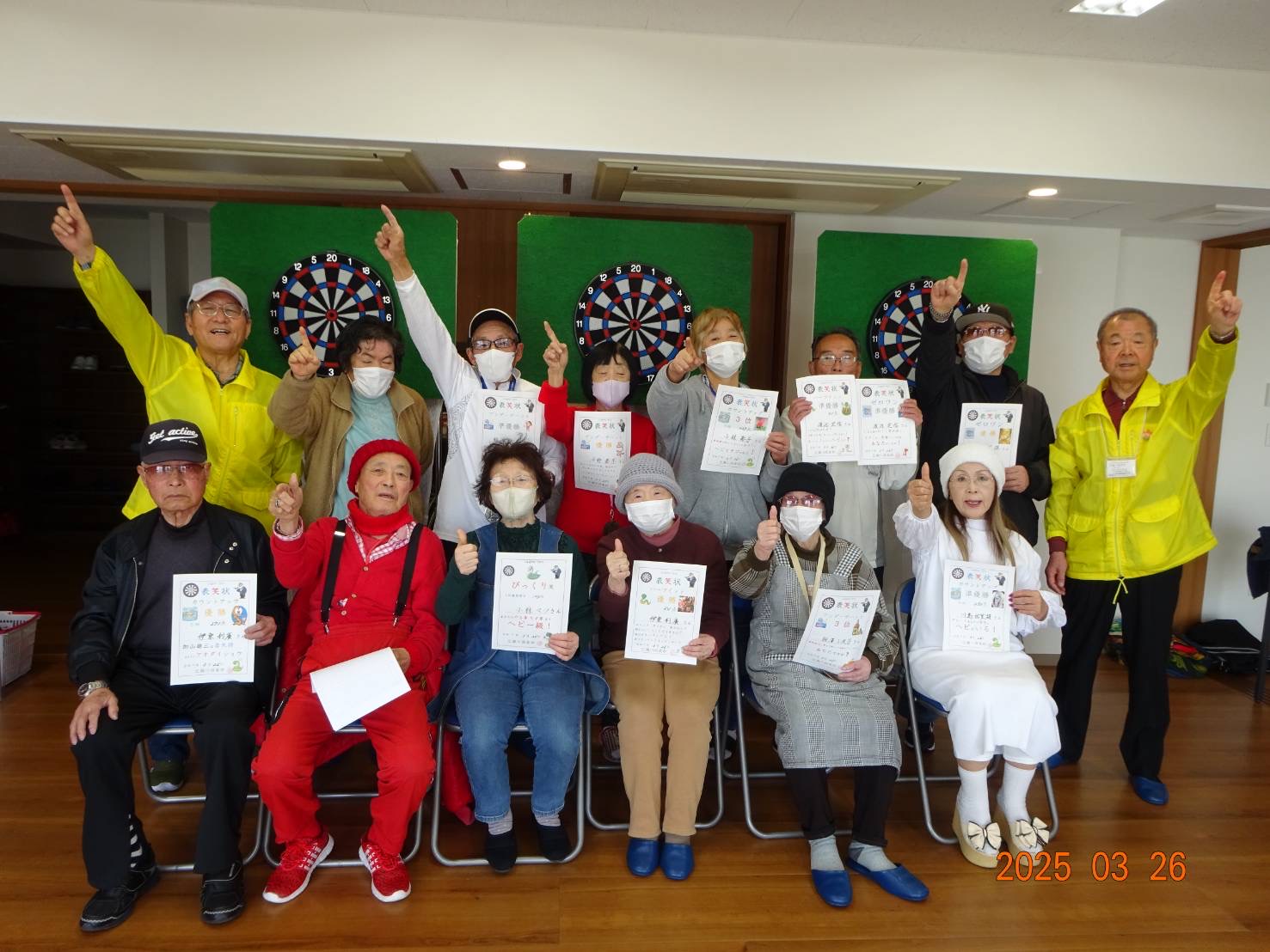 住民の皆さんは「ダーツ交流会」を一番の楽しみにされていらっしゃる方ばかりで、冬ノサムサニモマケズ楽しく元気にプレイして頂きました。