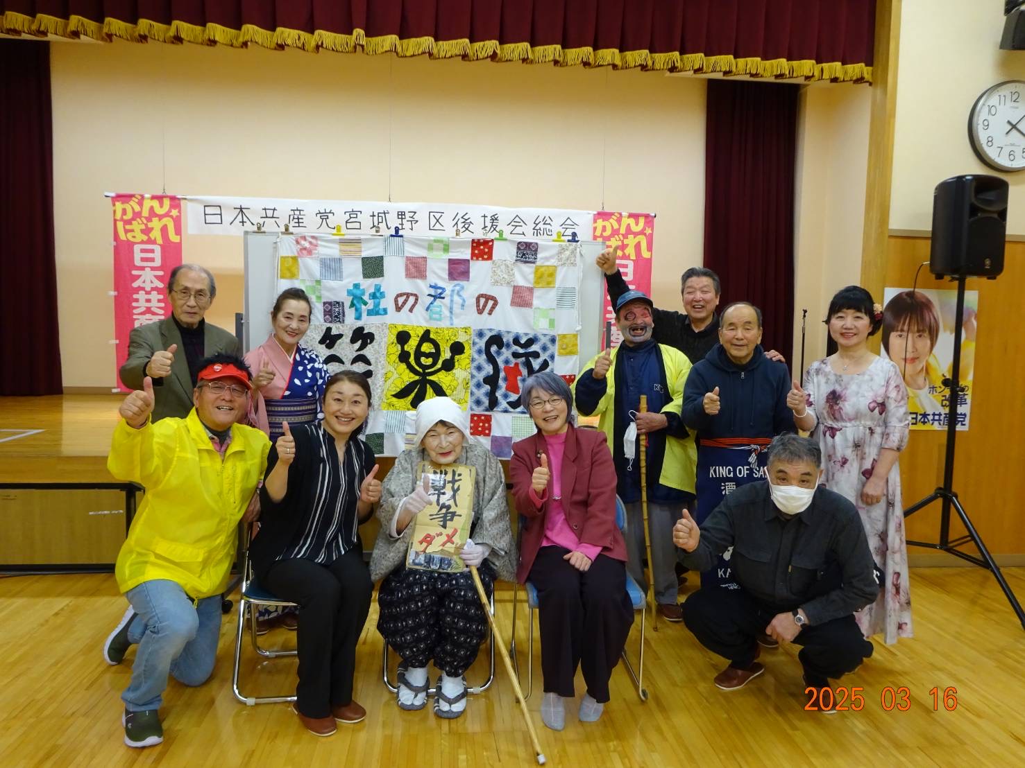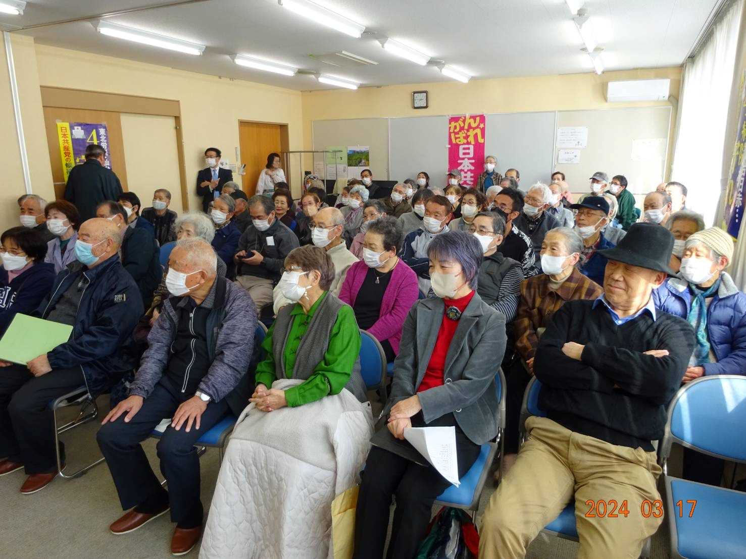 3月19日、初めて白石市の2カ所で開催したが、テレビ放送の後でもあり会場は満員で大盛り上がり、皆さんから「テレビを見たよー!」