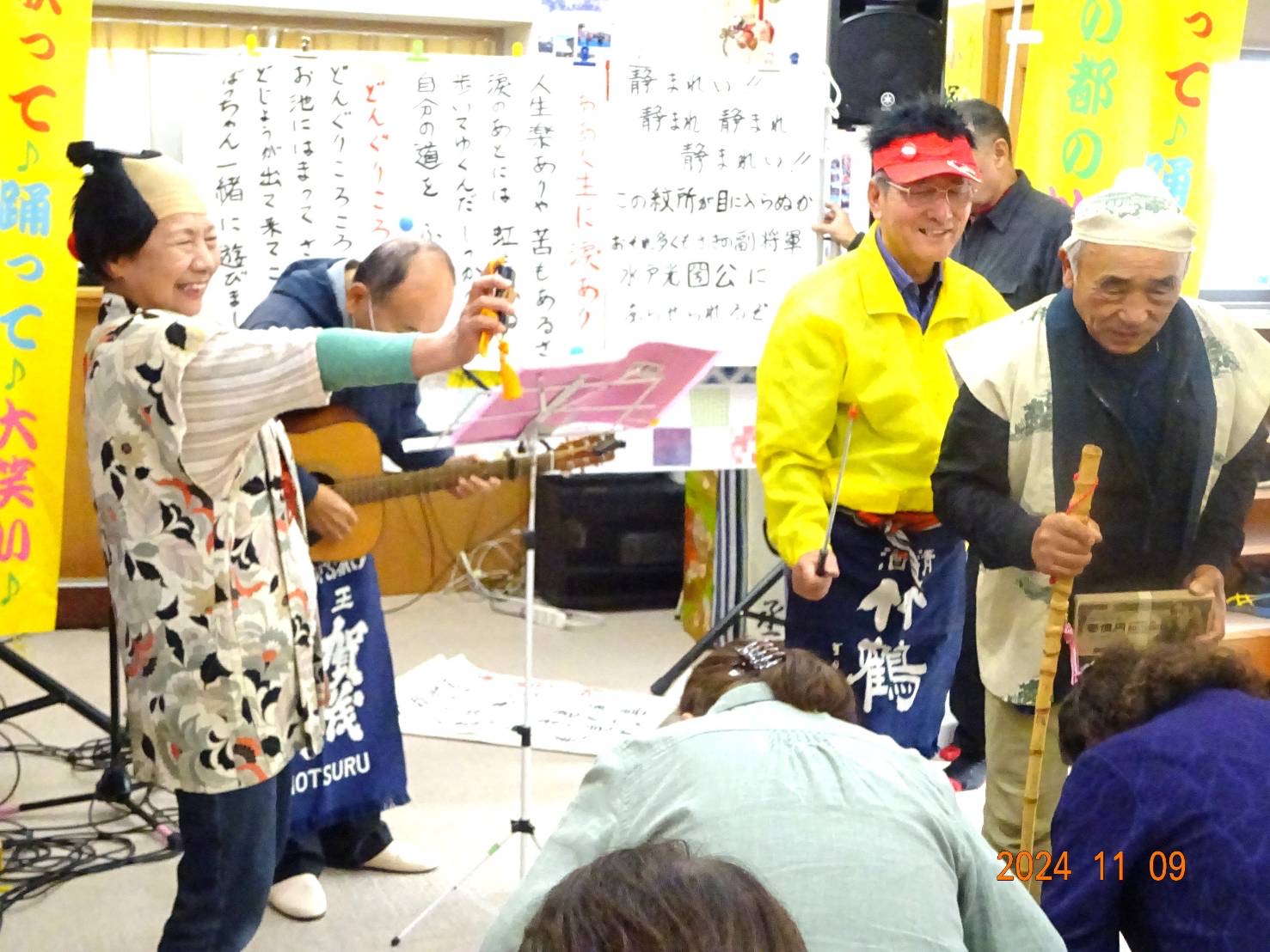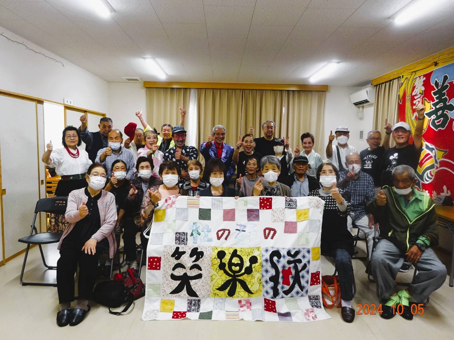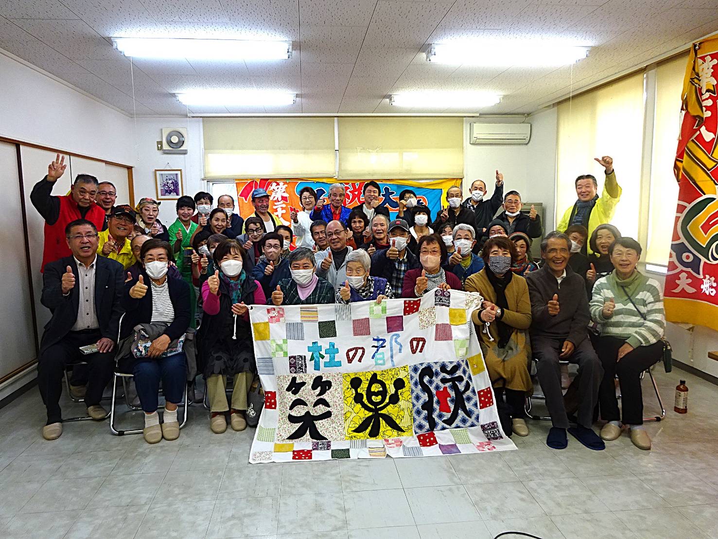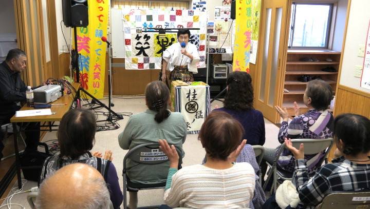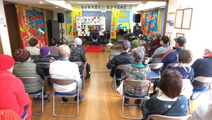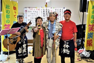強い風が吹く寒い中、笑楽隊公演を楽しみにして待って下さっていた50名もの方々が参加して下さり、2時間30分もの長時間、終始盛り上がりっ放し!