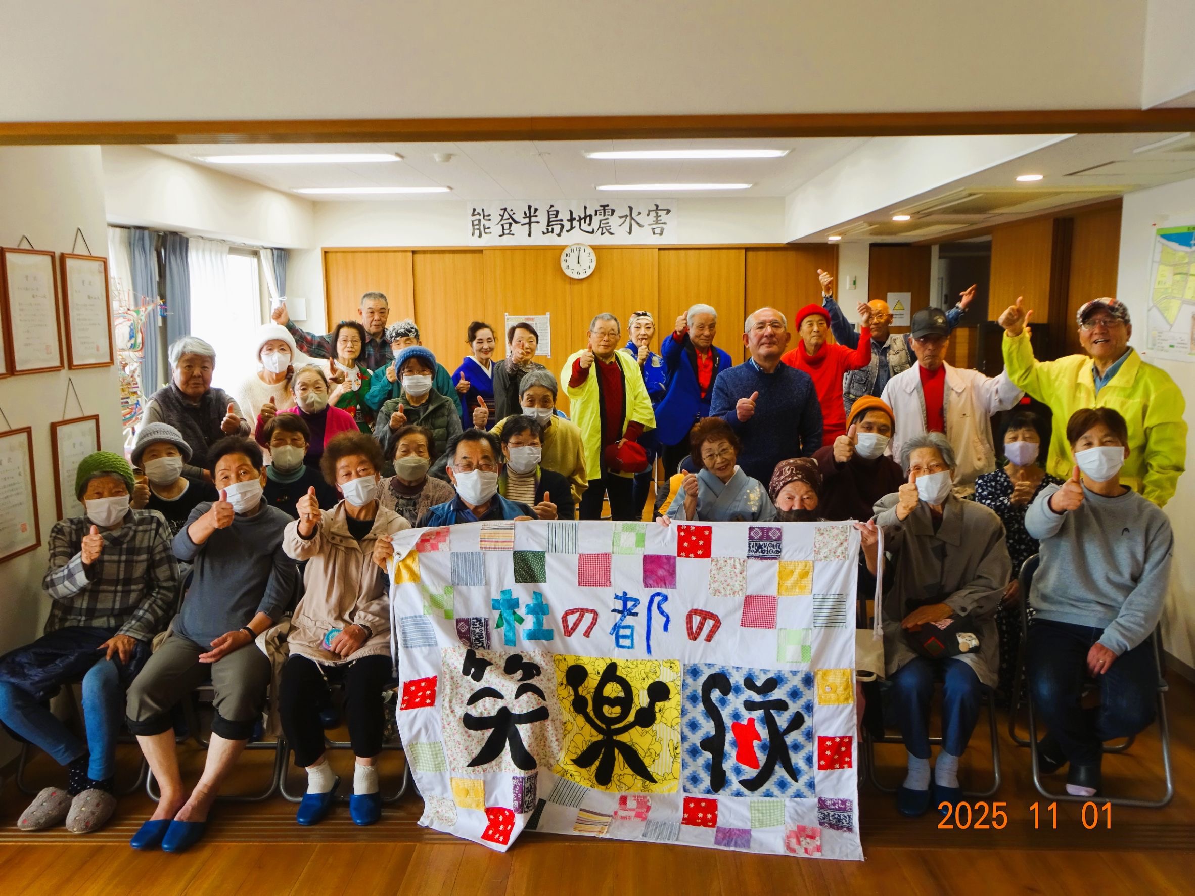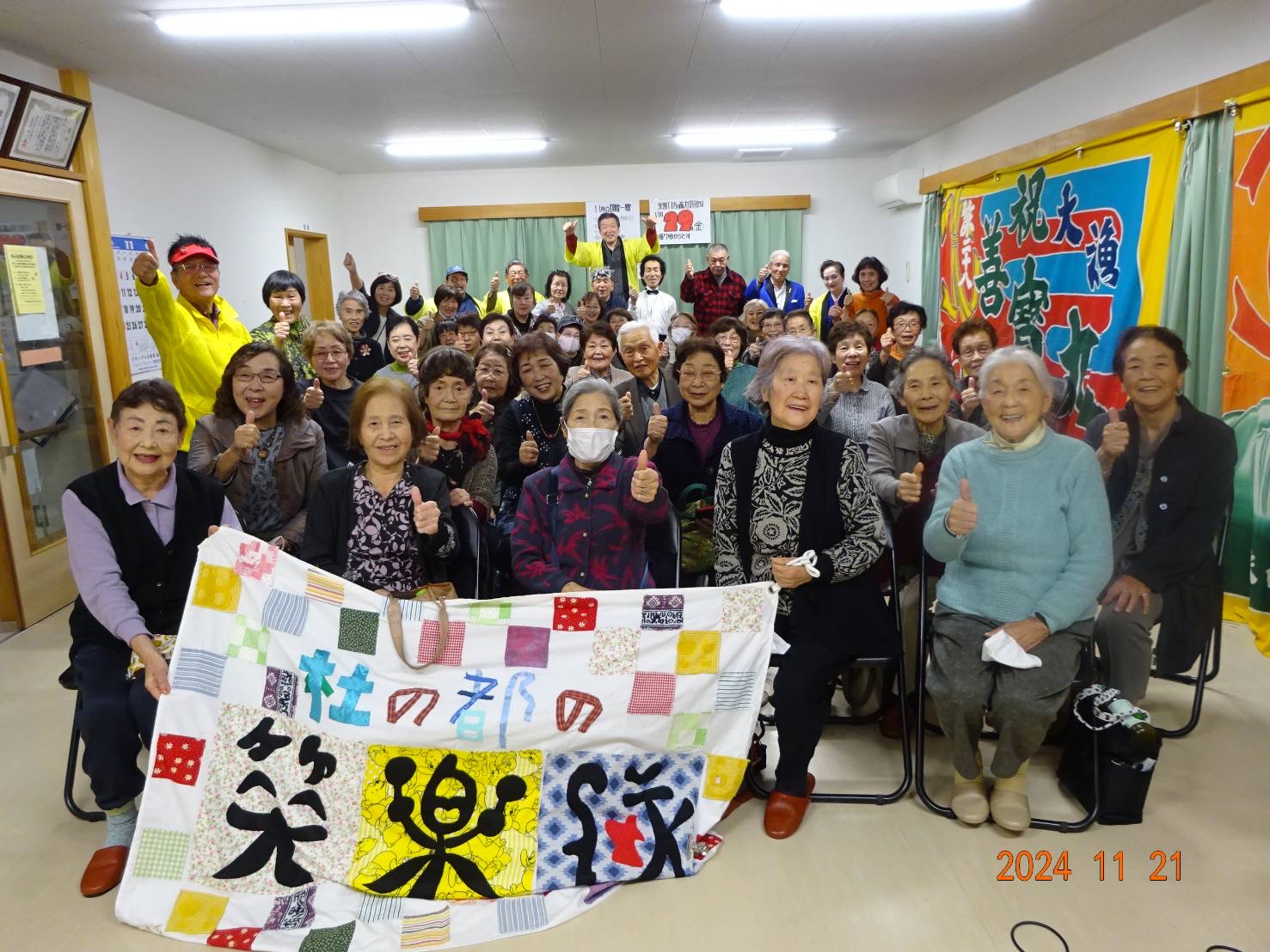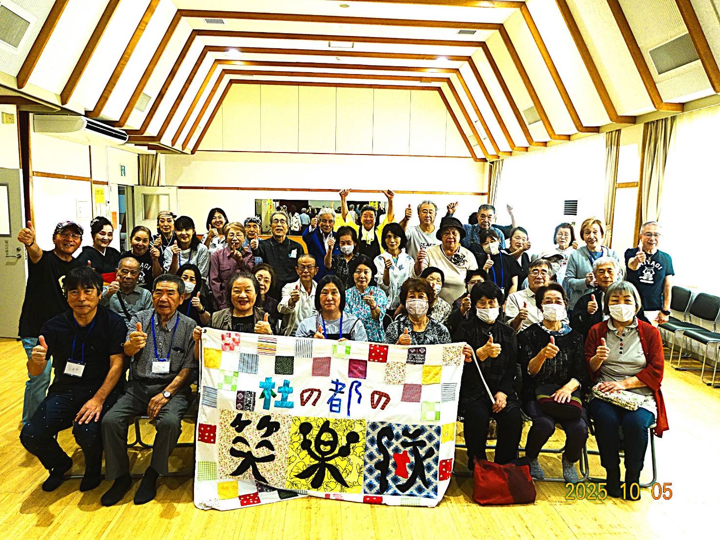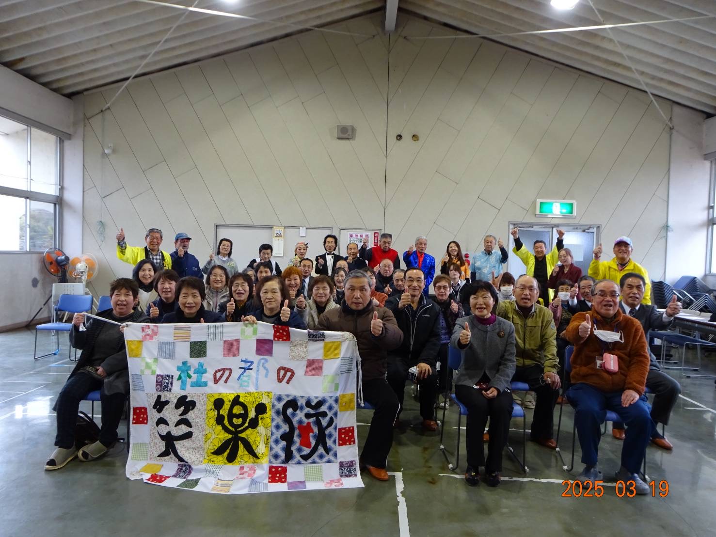 強い風が吹く寒い中、笑楽隊公演を楽しみにして待って下さっていた50名もの方々が参加して下さり、2時間30分もの長時間、終始盛り上がりっ放し!