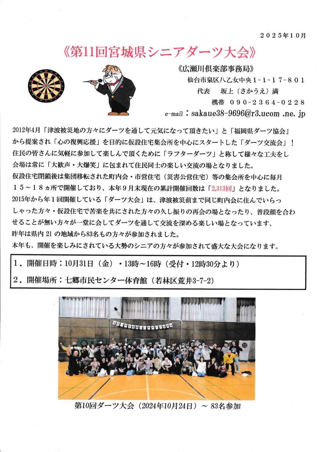 10月24日、「第10回宮城県シニアダーツ大会」を開催!