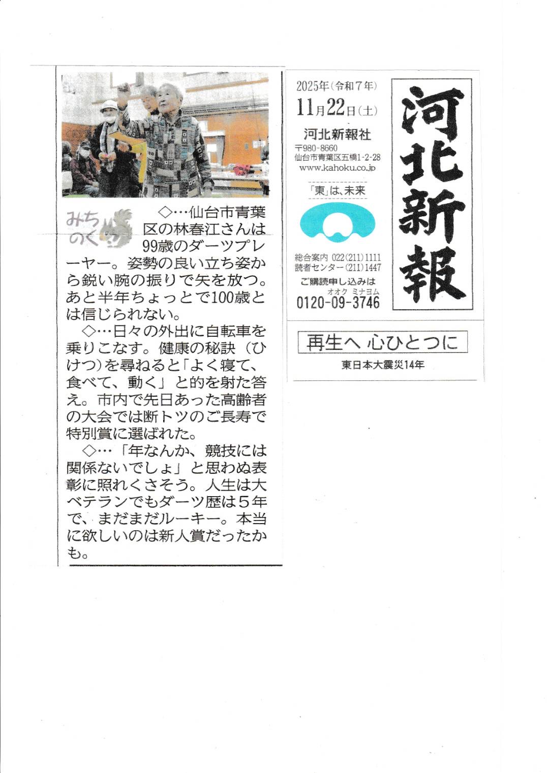 99歳の女性が参加されたときはテレビ局の取材が有り、当日夕方のニュースで放送され、大きな反響が有りました。