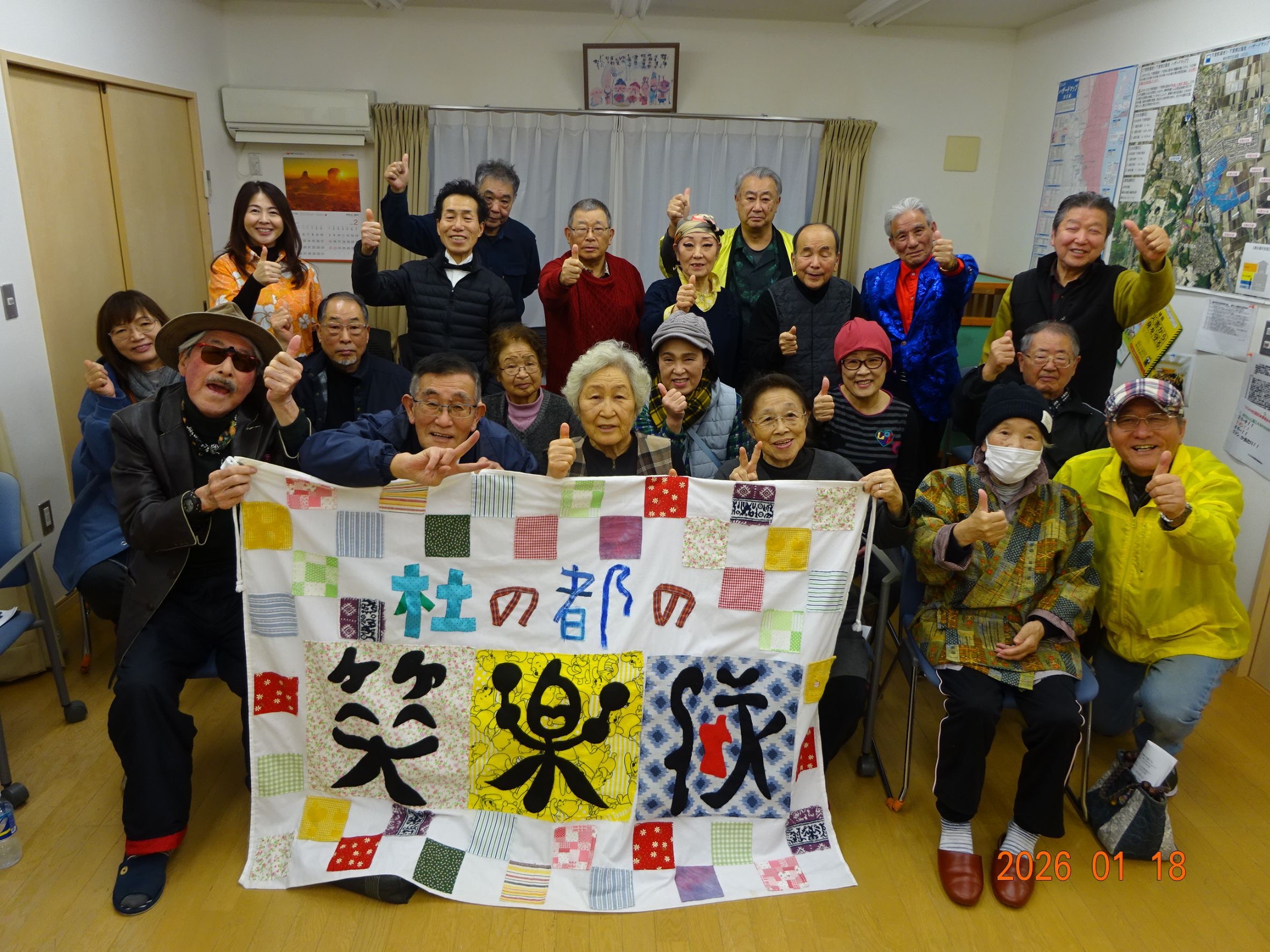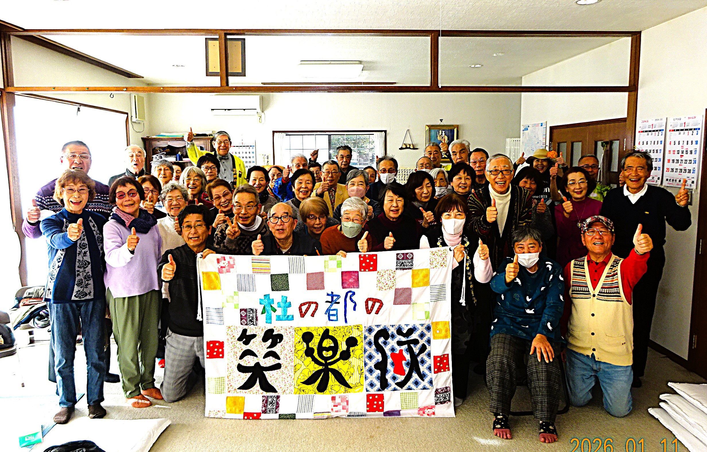 「町内会の新年会を盛り上げて欲しい・今年の初笑いにしたいので笑楽隊の公演をお願いしたい・・・」隊員にとって嬉しいリクエストを頂き「4ヵ所」で公演。