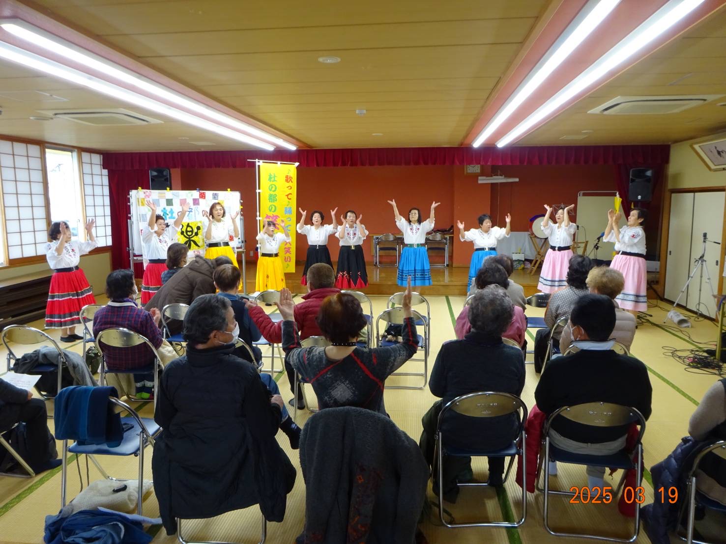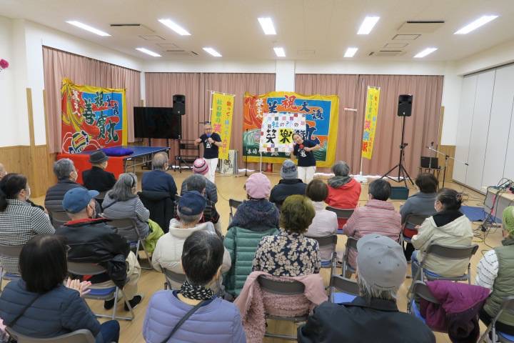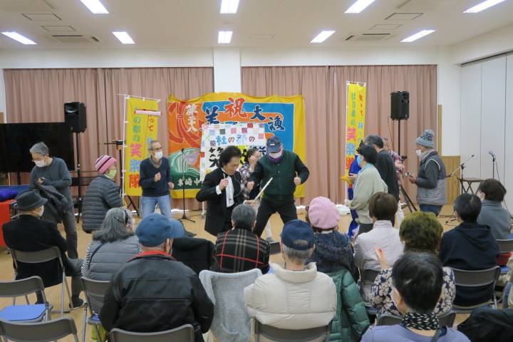 ≪2023年1月≫ 「杜の都の笑楽隊」公演 住民の方も大勢ステージに上がって頂き「歌って踊って大笑い」〜会場は大爆笑でした