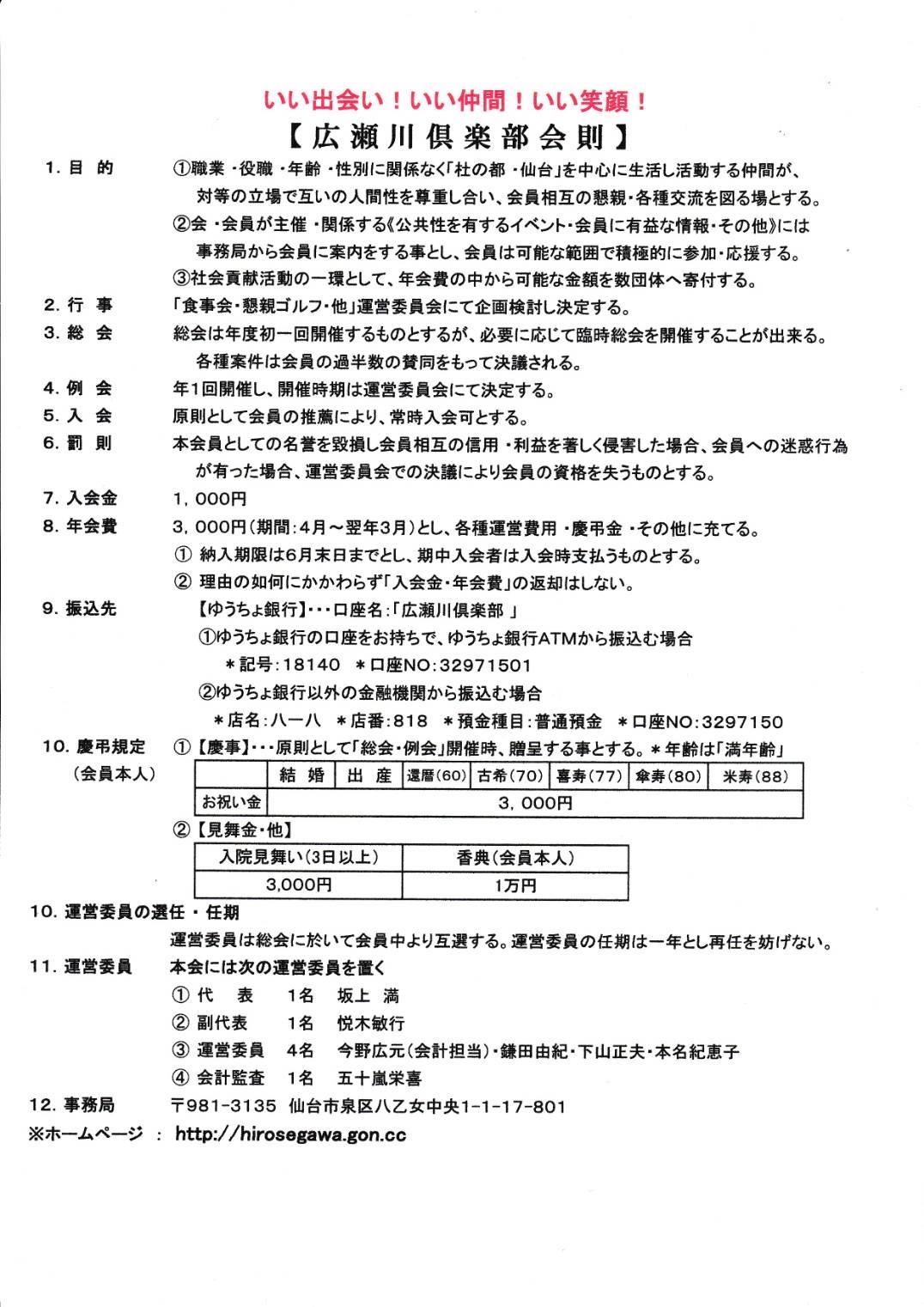 【 広 瀬 川 倶 楽 部 会 則 】 |
